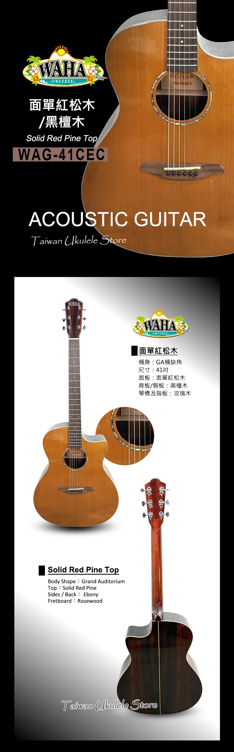 【台灣烏克麗麗 專門店】 哇哈 WAHA Acoustic Guitar 木吉他 WAG-41CEC 面單紅松木/黑檀木(附琴袋+調音器+PICK*3)