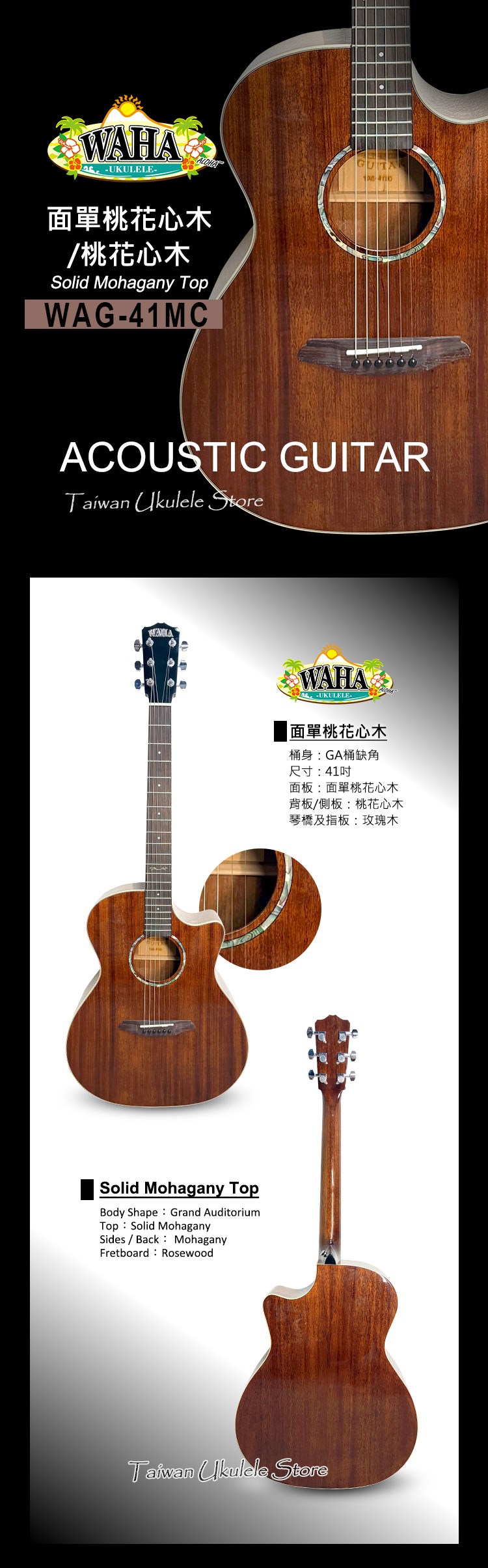 【台灣烏克麗麗 專門店】 哇哈 WAHA Acoustic Guitar 木吉他 WAG-41MC 面單桃花心木/桃花心木(附琴袋+調音器+PICK*3)