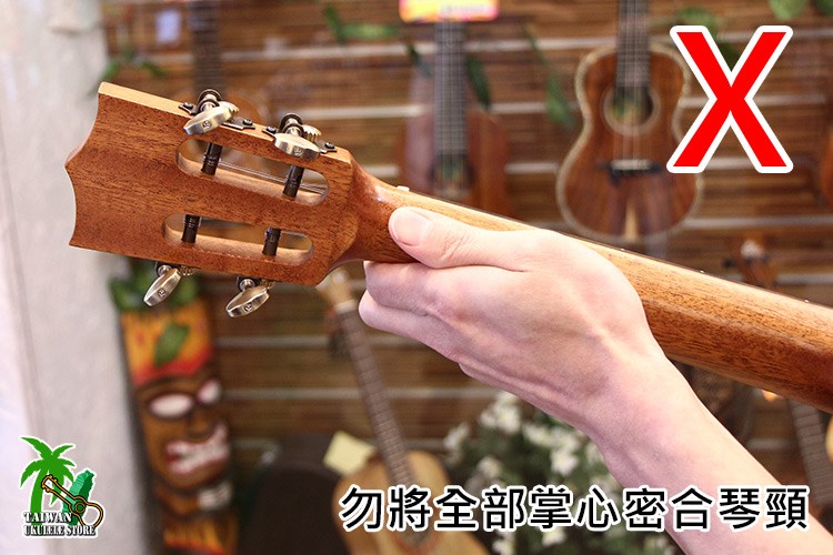 6.勿將全部掌心密合琴頸,過度緊密會導致左手施力困難及移動時磨擦力太大而失去靈活度。