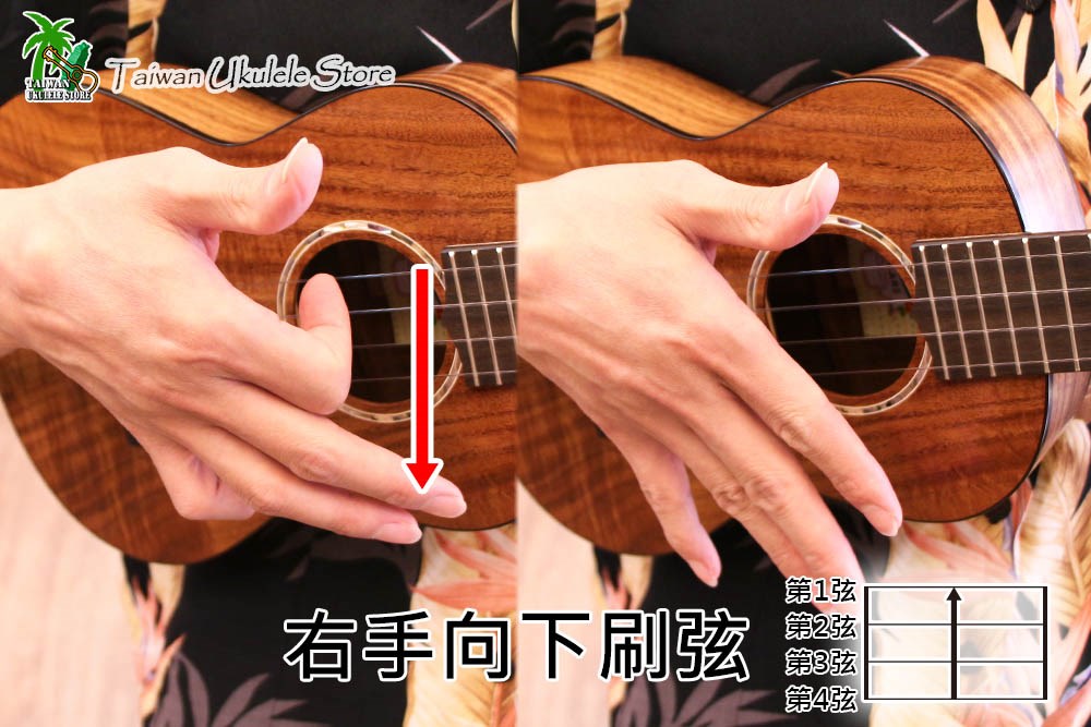 3.刷弦時使用腕力來帶動食指指甲來下、上彈奏。