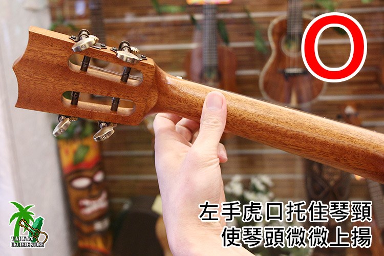 5.將左手虎口托住琴頸跟琴頭交接處,使琴頭微微上揚,虎口不要懸空不然琴頭易滑落。